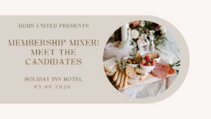 Let’s keep the momentum going into 2026! Renew your Dems United membership at $10 for members 65 and older, $15 for individuals ages 25–64, and free for those under 25. Your support helps us continue creating change, supporting candidates, and amplifying voices across our community.